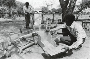One important feature of such a center is a simple but adequately equipped shop for making basic orthopedic equipment and rehabilitation aids at low cost. The shop also gives disabled persons a chance to learn useful skills, to earn some money, and to be good examples for other disabled children and their families.