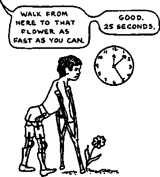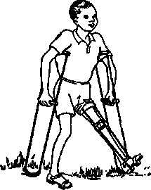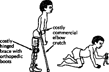 9. A common error is to provide children with more bracing than they need. Often a child will come to the rehabilitation center already fitted with big heavy braces that he never needed or no longer needs. They may actually slow him down. Always check to see what a child can do with and without his aids. Try smaller, lighter aids, or none at all. Above all, ask the child what he prefers.