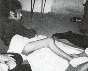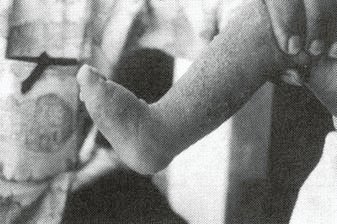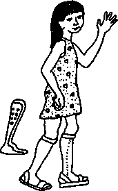 Six months later Tinas father took her to a village rehabilitation center where they fitted her with a lightweight plastic brace. She could wear it under stockings and still use her old sandals. She was happy to wear it anywhere |