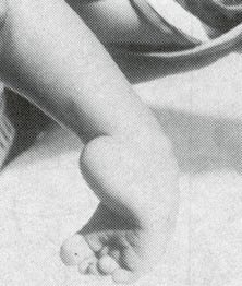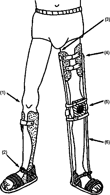 The foot hangs down and often develops a tiptoe contracture (1) which, in effect, makes the leg longer.