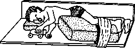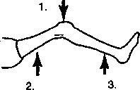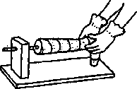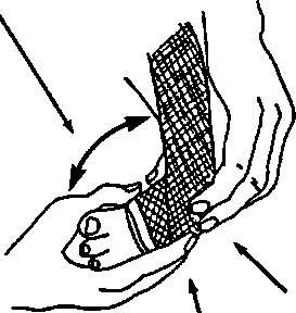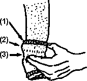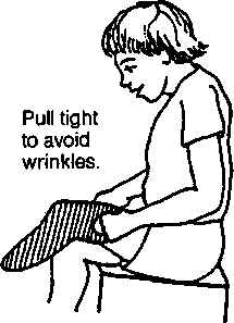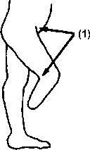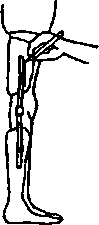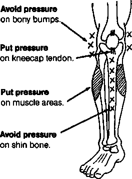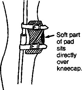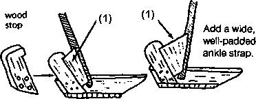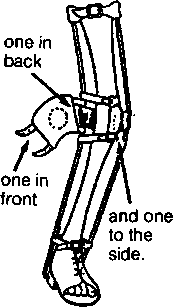 To help keep knee from bending when weight is on it, stretch a piece of rubber across front of knee (1).