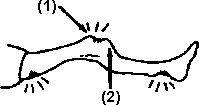 If socket presses on the end of the bone, scrape out a hollow here (1).
