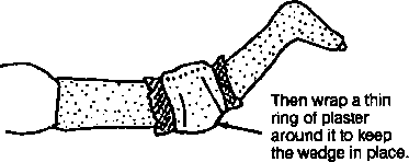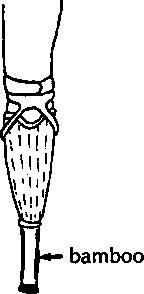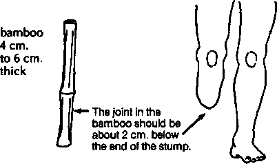During the first few weeks of using an artificial limb, the stump becomes smaller, and several changes in limb size may be needed. To save time, use a shorter bamboo post so that the plaster socket can be replaced several times with new, smaller ones.