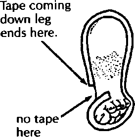 IMPORTANT: For both below-knee and above-knee limbs, try to line up the limb as well as possible so that its angle is similar to the other leg and feels right when the child stands and steps. Often this requires repeated tries and adjustments. Getting the limb to line up right is the key to successful limb fitting. It helps to learn this from someone skilled at fitting limbs.