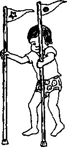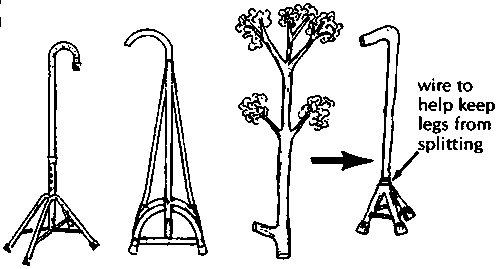 Note: By putting the pole through the foot (1), if the foot breaks off the person can keep walking. |
