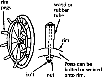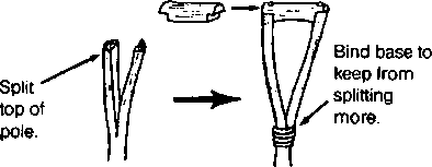 4. Fasten PVC firmly to socket with wire or rivets (or both). It is best to attach it temporarily with wire and to have the child try it before you fix it permanently