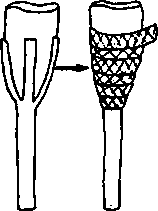 7. After trimming the tops of the bamboo strips, cover the outside of the socket with several layers of glue, sawdust, and gauze bandage: