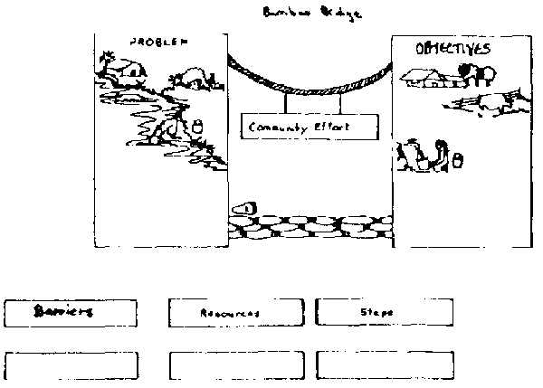 Ask participants how they would evaluate the project they Just planned during the bamboo bridge activity. List their suggestions and ask them to discuss how they decided what to evaluate and how they would use the evaluation.