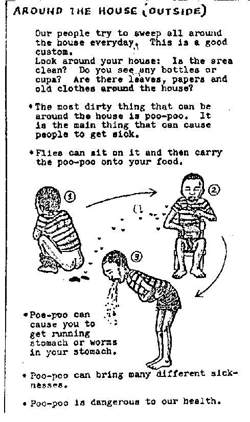 4. "Do they have diarrhea, dysentery, cholera, typhoid, worms in this village?" "What causes these illnesses?"