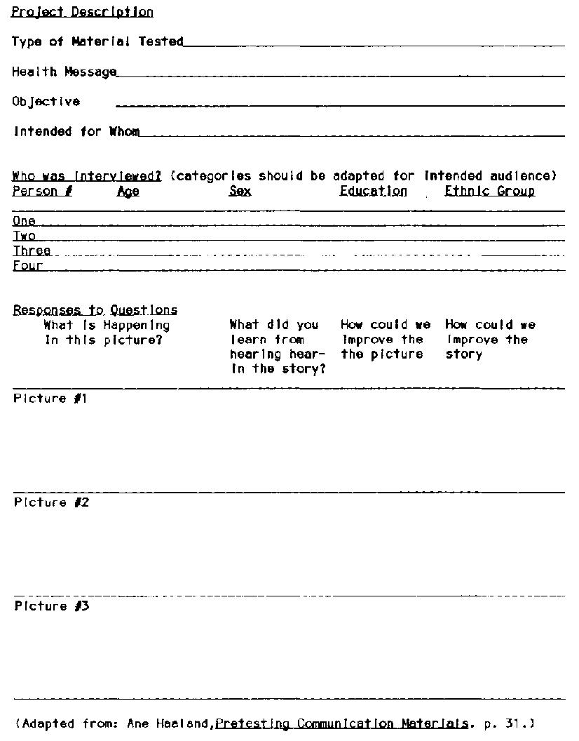 The problems you have already uncovered in the formal village survey can be compared with the views expressed informally through this type of questioning. In fact, much of the essential information may have already been gathered while you were first getting acquainted with the community.