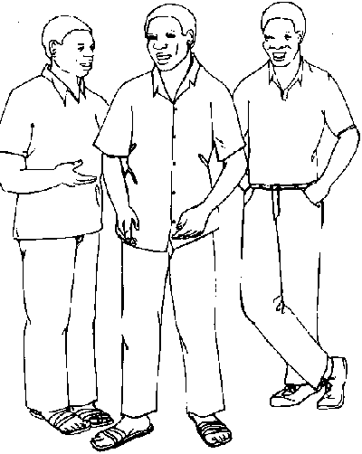 The original TASO story, from which this version has been adapted, used symbols to help explain the processes of HIV infection, HIV transmission and development of AIDS-related conditions - using circles for HIV infection, squares for HIV antibodies and triangles for HIV-related symptoms. If you feel this makes the story easier to explain to others, you can add these symbols to the pictures in the following section. Other possibilities are to colour the clothing in some way or try to draw what is happening inside the body but cannot be seen on the outside.