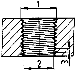 With blind holes, the chamfer of the thread tap (third tap) is to be taken into consideration as follows: