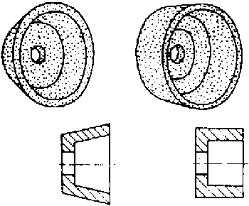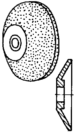 Grinding wheels with flaring or straight (cylindrical) outer face, which - due to their flat end faces - are especially suited for grinding surfaces that must not be hollow-ground, such as lathe tools and planing tools.