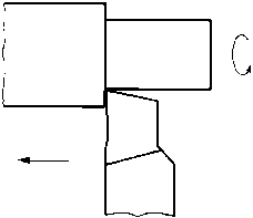 The facing operation may be performed from the outside inwards or vice versa. In order to avoid convex (curved) surface shapes of the end faces, the tool slide is to be locked in longitudinal direction prior to cutting.