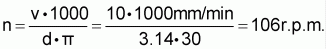 Like with longitudinal turning and facing, the values to be set are determined by means of tables of recommended values depending on the kind of operation and on the lathe.