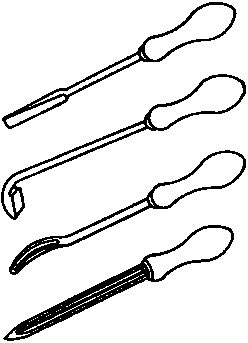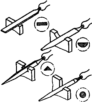 All sorts of scrapers are used for producing exact surfaces for guides, for fitting in parts with exact bearing faces and for producing tightening bearing faces.