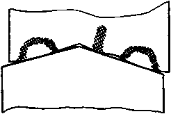 3. The touching-up is performed by several rotations of the shaft in the bearing shells, afterwards the bearing shells are again disassembled.4. The points of contact (bearing spots) are shaved off by pushing rotary motion with a triangular or spoon scraper.
