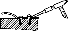 To remove grooved drive studs, apply a flat chisel sideways between the head of the grooved drive stud and the surface of the component part, and by a few hammer blows, lift the drive stud and remove it with a pair of tongs.
