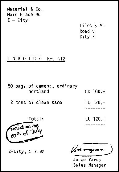 If your supplier of raw materials comes along with an invoice, you do not need to write a receipt. In this case, the invoice can also be used as a receipt. It is sufficient, when your supplier writes on the invoice that he has received the money and signes this statement (town, date and signature) as it is shown below.
