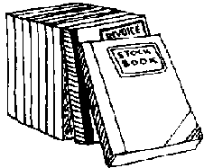 The stock book is used to enter the figures arising from your stock-taking. Once or twice a year you must take stock. This means that you write down for each article the number of them you have, and also the value.