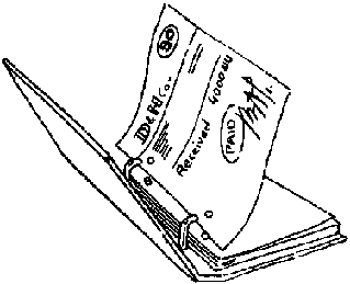 When the customer pays his debt, you enter the amount in the ledger, take the copy of the invoice from the invoice book, mark it" Paid " and file it in the voucher file.