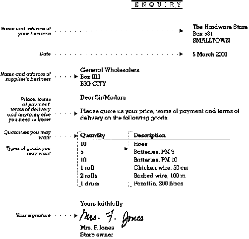 If you have received a quotation, mention it in your order. You do not have to order everything on the quotation. Only order what you need. Think carefully about the quantities of the goods or materials you need: