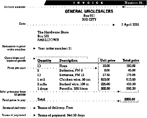 The invoice tells you when and how the supplier wants to be paid. This is often called terms of payment. For example:
