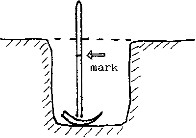 To make sure the ditch has been dug to the correct depth, the worker makes a mark on the handle of his shovel or pickaxe, representing the required depth and uses it to guide him during the course of the digging.