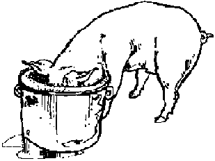are shaken out of the box directly into the pig trough. A split bamboo duct can
