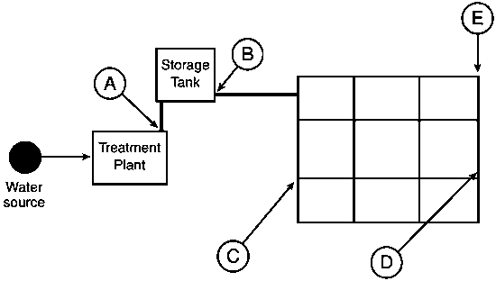 Sample sites in a small water supply with ring main