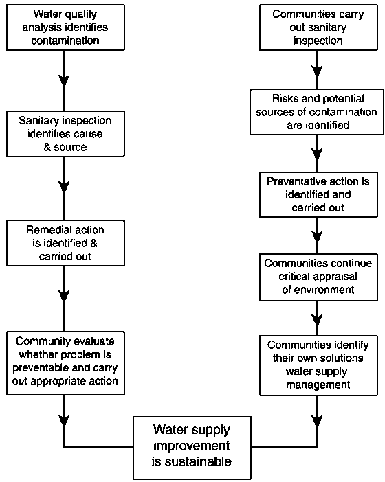 Strategies for monitoring of microbiological quality of safe water should also include hazard identification and risk assessment, processes commonly incorporated within sanitary inspection. It is important that these are systematic and quantifiable and can be used to facilitate decision making at local, regional and national levels on preventative and remedial actions. In addition, minimum treatment requirements and source protection should be emphasised as essential complementary activities to monitoring and assessment.