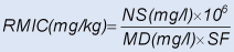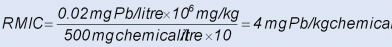 were NS is the national standard (or GV), and MD the maximum dosage of the water treatment chemical. A safety factor (SF) of 10 is judged as reasonable to limit to 10% of a given NS the contribution by a given impurity in a water treatment chemical. A sample calculation of a RMIC is as follows: