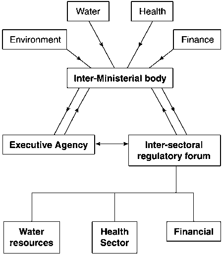 The development and optimisation of the institutional framework in the water sector is essential for effective, output driven water quality monitoring. Unless the roles and responsibilities of each player are established and recognised, then the generation of monitoring data and information may not lead to the desired improvement in water supplies.