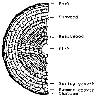 The parts of a tree, as seen from a cross section.