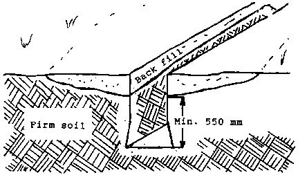 - If the site has been back filled you must dig the footing deep enough to go to a minimum of 550 mm into firm soil.