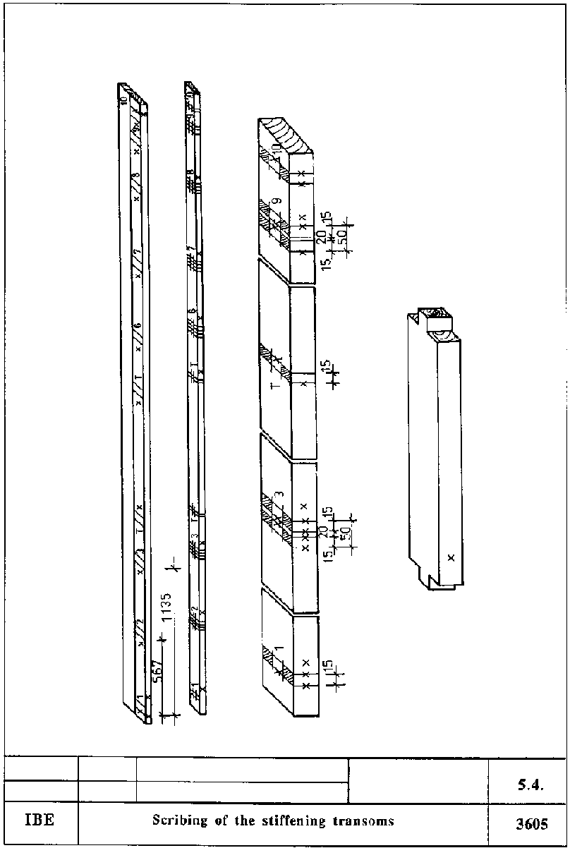 The stiffening transoms for the partition wall shown in the detailed drawing are to be scribed.