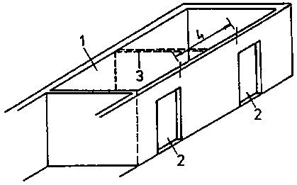 1 room to be partitioned, 2 existing door, 3 partition wall to be built, 4 building-in range of partition wall