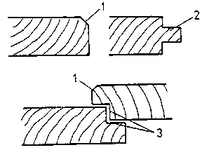 1 rabbet plane, 2 rabbet, 3 guide strip (straightedge), 4 workpiece
