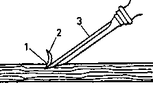 - notching along the scribed line diagonally to the grain and cutting off wood chips.