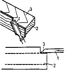 1 cutting edge of the blade, 2 workpiece, 3 surface of the workpiece