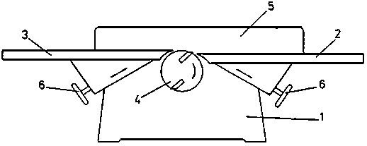1 column, 2 feeding table, 3 unloading table, 4 cutter spindle, 5 stop bar, 6 handwheel for adjustment of table
