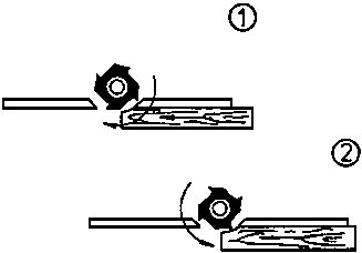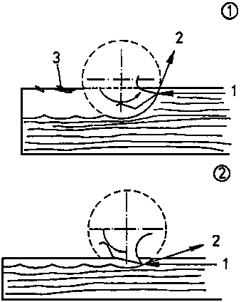 In the case of counter-rotations cutting the cutting forces operate against the feed force. Consequently safe manual feed becomes possible. Chipped edges along the processed surfaces of slotted and milled cuts may result during counter-rotational milling. This occurs because of the unfavourable cut direction of the tool cutters vis-à-vis the grain direction of the work-piece.