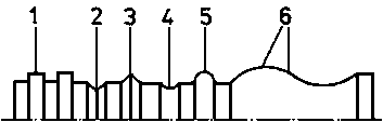 1 rod, 2 candle, 3 sharp rod, 4 chamfer, 5 round rod, 6 curve and chamfer