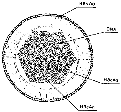 GRAFICO 14.2 - ESTRUCTURA ANTIGENICA DEL VIRUS HEPATITIS B