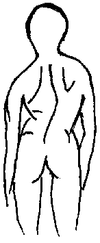 2. Dorso lumbar: por lo general son curvas grandes hacia la derecga, se extienden de D4, D5 o D6 a L2, L3 o L4, son bastante frecuentes y originan deformidad estéticamente menor, aunque pueden ocasionar grave distorsión de costillas y flaco por la rotación de las vértebras.