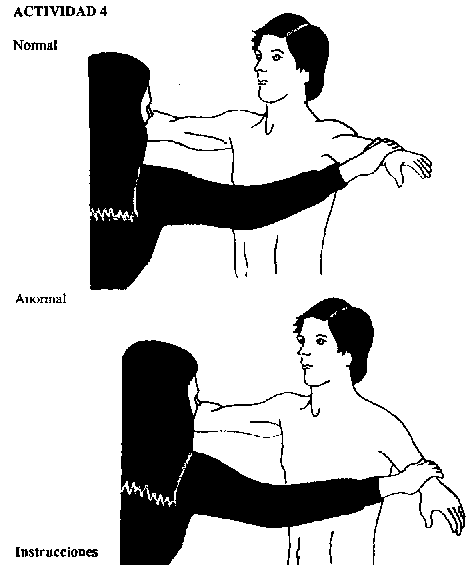 Extienda los brazos horizontalmente hacia los lados y levántelos mientras el examinador los sostiene hacia abajo.