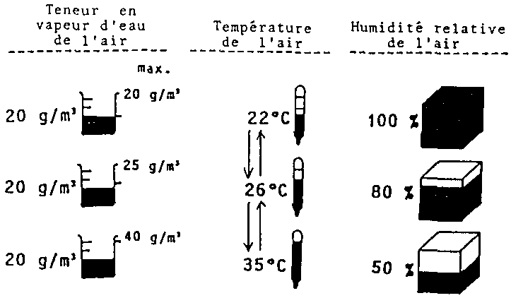 Comme nous l'avons vu le taux de saturation de l'air dépend de la température c'est- à- dire que plus la température de l'air est élevée plus l'air est capable d'absorber d'eau: