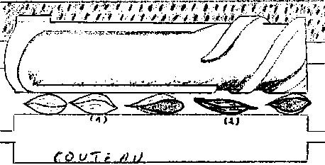 le réglage pour les variétés longues et minces(1) (couteau reserré) cassera les variétés rondes(2) et entraînera des pertes.