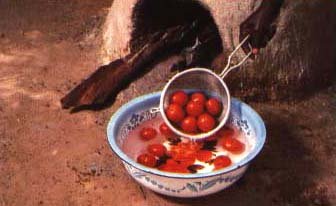 19. Et nous les plongeons aussitôt dans de l'eau froide pendant quelques minutes. L'eau froide après l'eau bouillante aide la peau à se décoller.